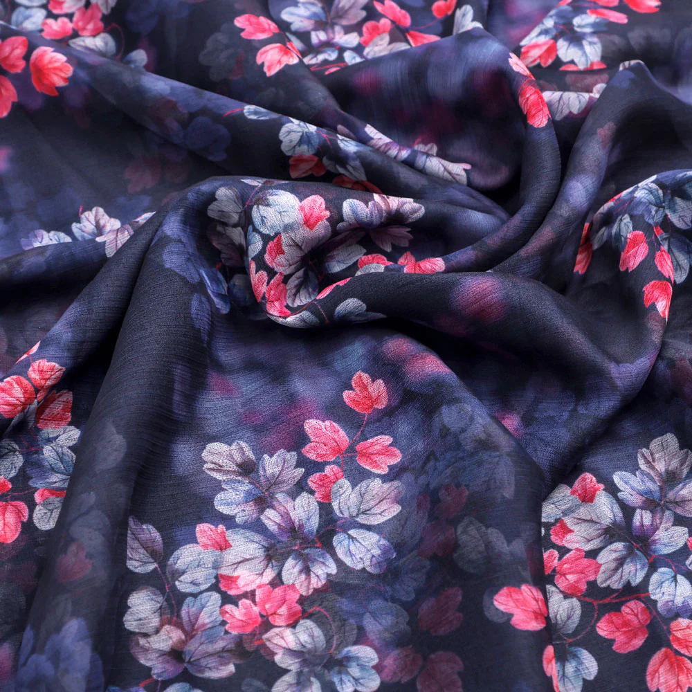 Homepage Classy Blue Floral Chiffon Digital Printed Fabric